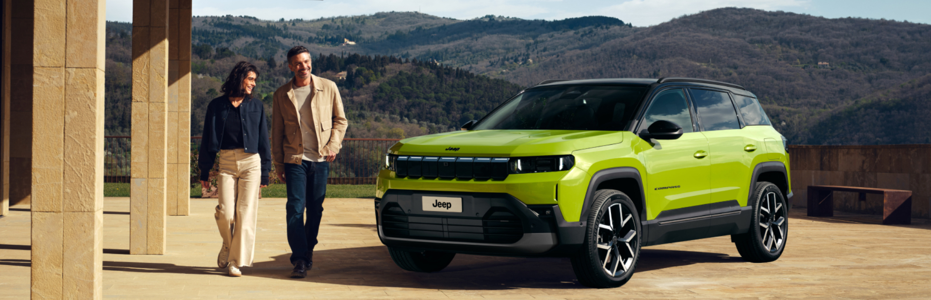 The Jeep design approach seamlessly blends modern style with functionality. With a bold look, icnic and architeconic shape, illuminated front- grille, and 360 protection, the New Jeep Compass Full- Electric combines rugged durability with a contemporary design and smart versatility.
